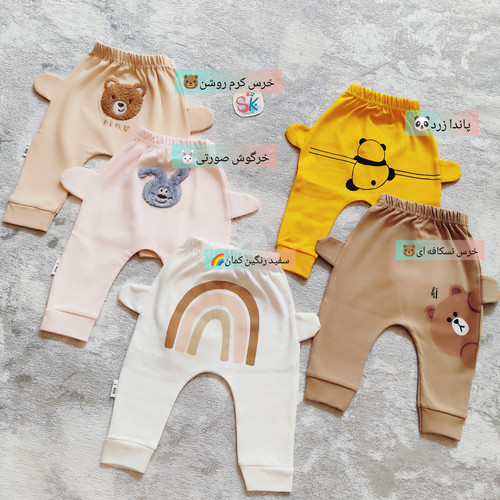 شلوارهایی تمام نخ گوش دار پشت چاپی نوزادی تا دوسال