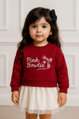 تونیک دخترانه زرشکی دامن آستر وتوردار