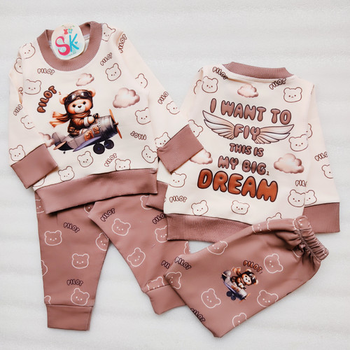 بلوز شلوار پسرانه نوزادی تدی خلبان 🧸چاپ خود پارچه