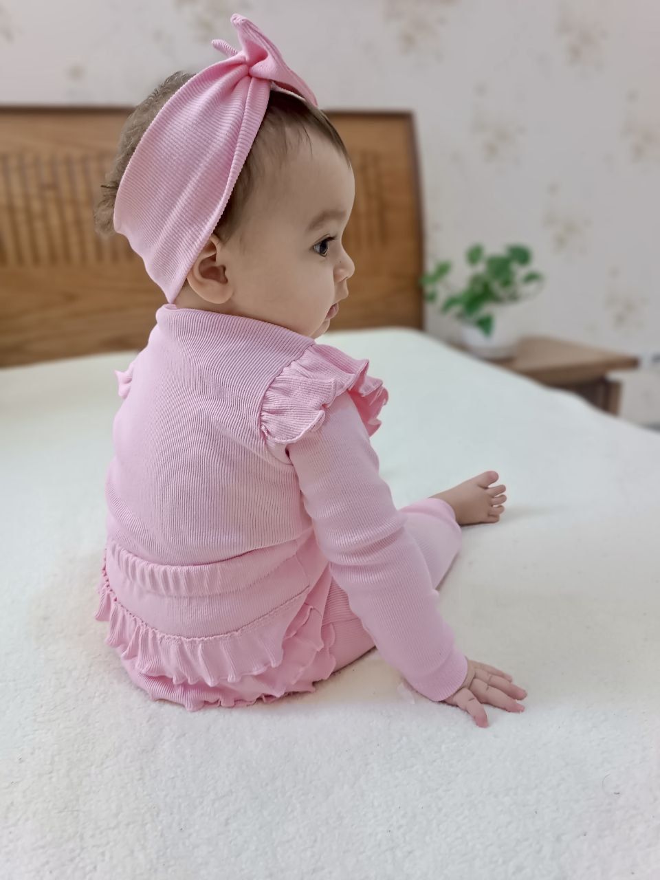 بادی شلوار و تل سه تیکه پنبه کبریتی