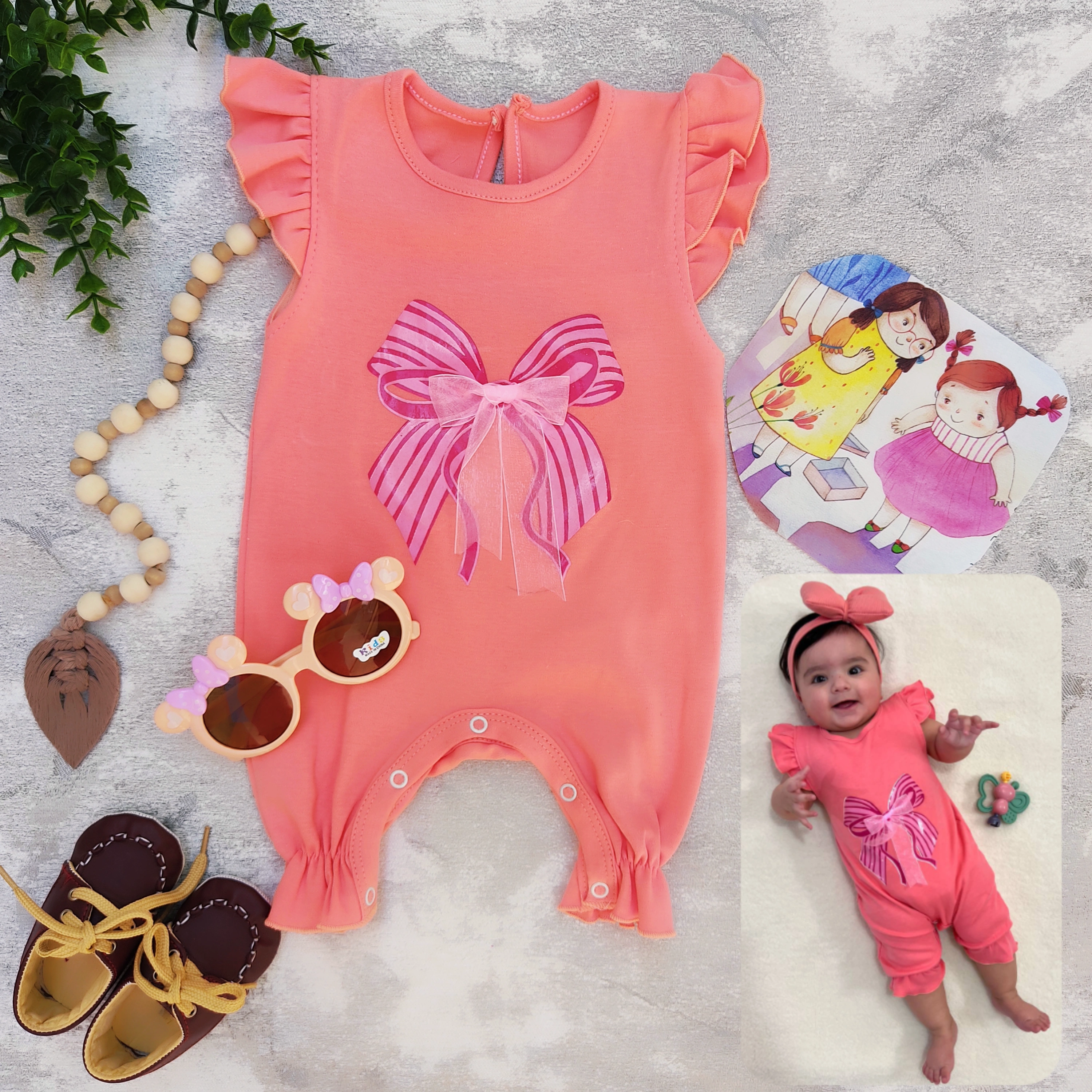 رامپر دخترانه پاپیون تک رنگ نخ پنبه