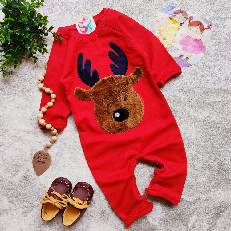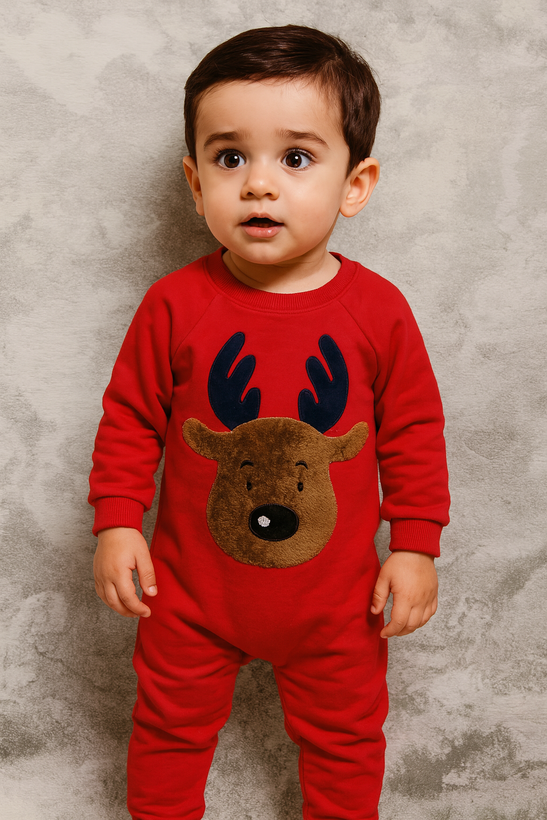 سرهمی یلدایی اسپرت ۹ماه تا ۴سال قرمز گوزن گلدوزی