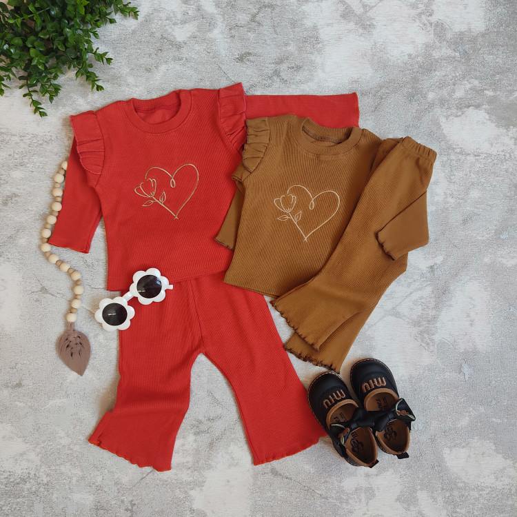 بلوز شلوار کبریتی جنس نخ سرشانه چیندار گلدوزی قلب وگل