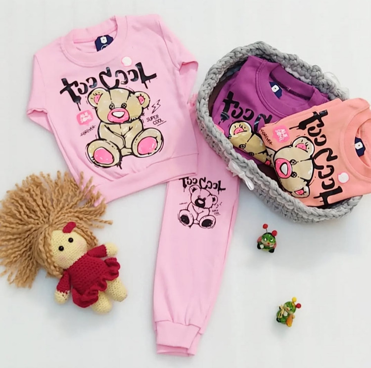 بلوز شلوار دخترانه نخ پنبه چاپ تدی کد ۱۰۰