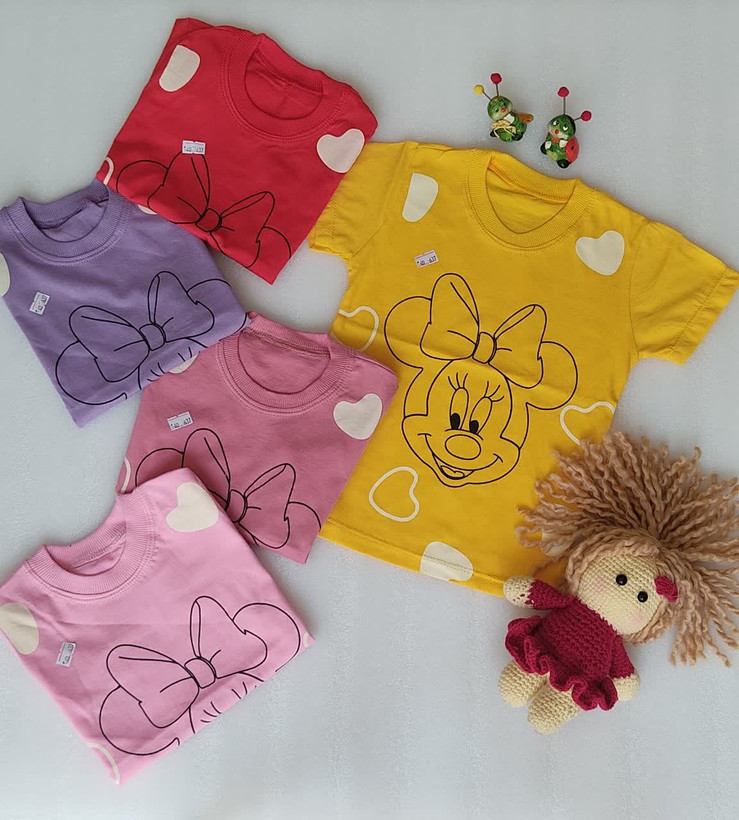 تیشرت دخترانه نخ پنبه طرح میکی موس چاپ خود پارچه