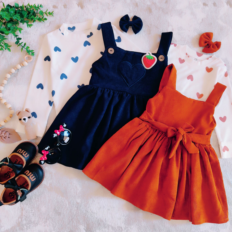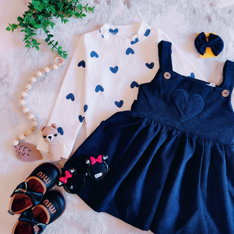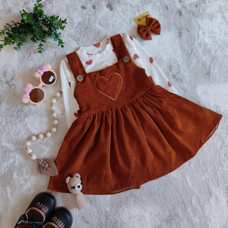 ست سه تیکه قلبی بلوز وسارافن مخمل کبریتی با گیره سر