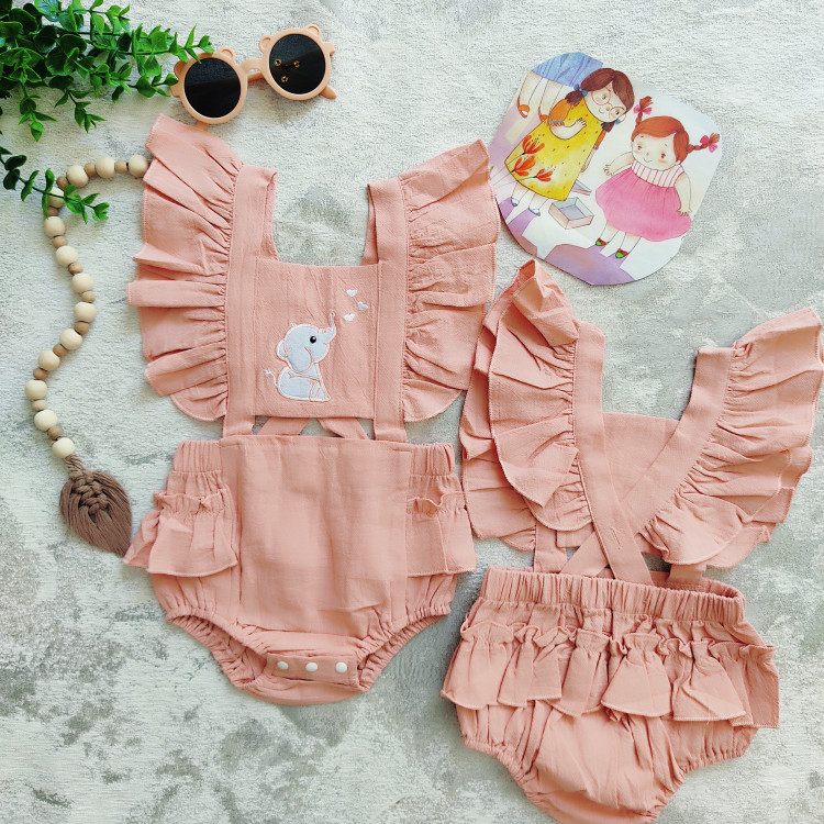 رامپر دخترانه وارداتی فیلی تک رنگ کالباسی