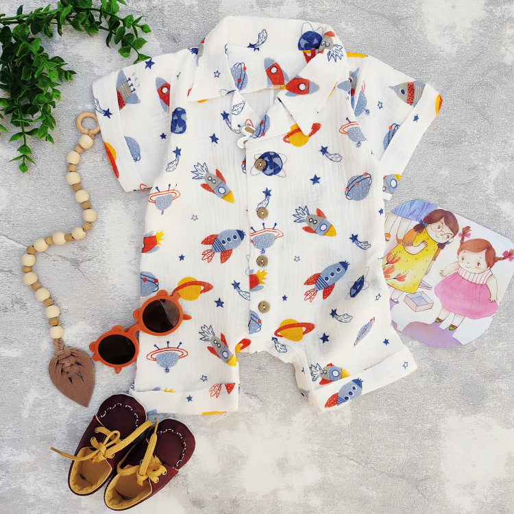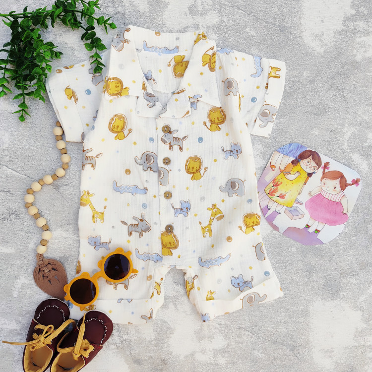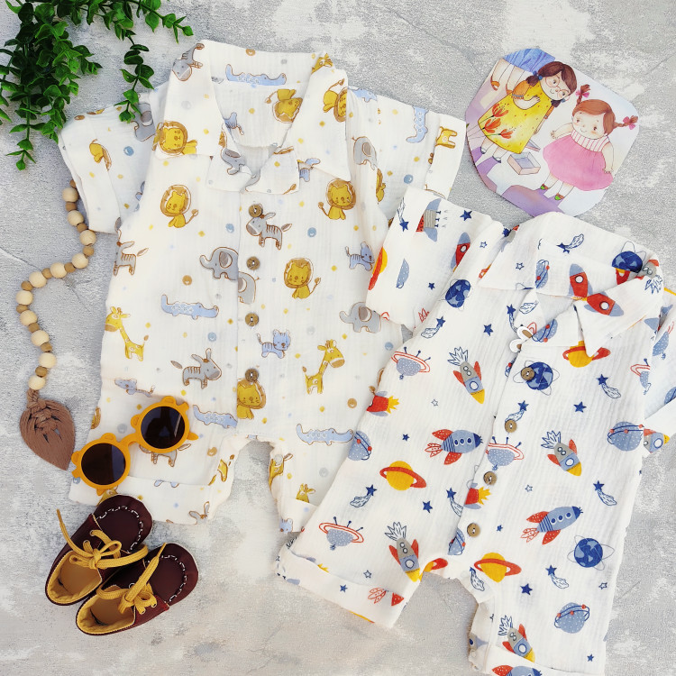 رامپر موسلین ٪۱۰۰پنبه یقه دار اسپرت حیوانات وفضایی