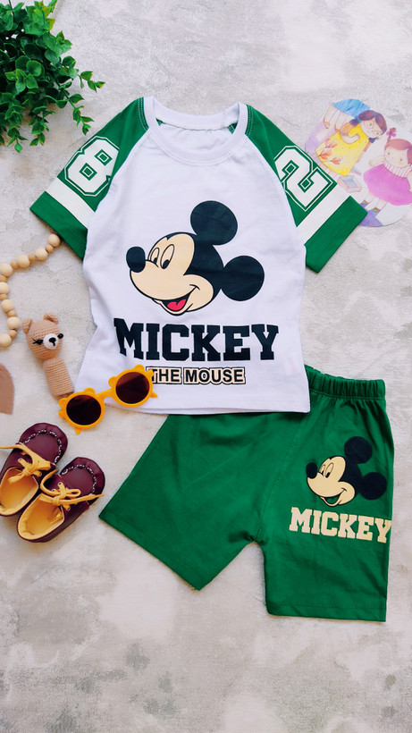 تیشرت شلوارک نخ پنبه لش سبز میکی موس