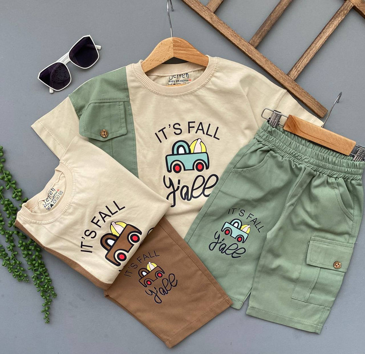 بلوز شلوارک پسرانه نخ پنبه و وشلوارک کتان ماشینی