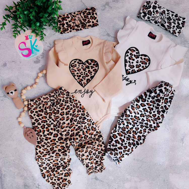 سه تیکه بادی قلبی باشلوار پلنگی وتل