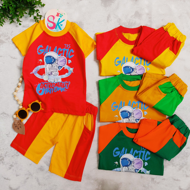 تیشرت شلوارک نخ پنبه دورنگی فضایی